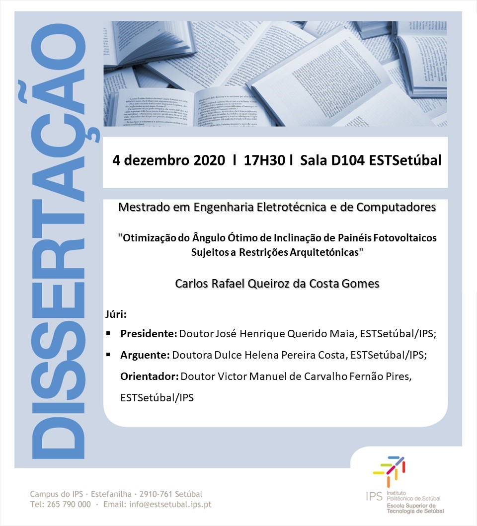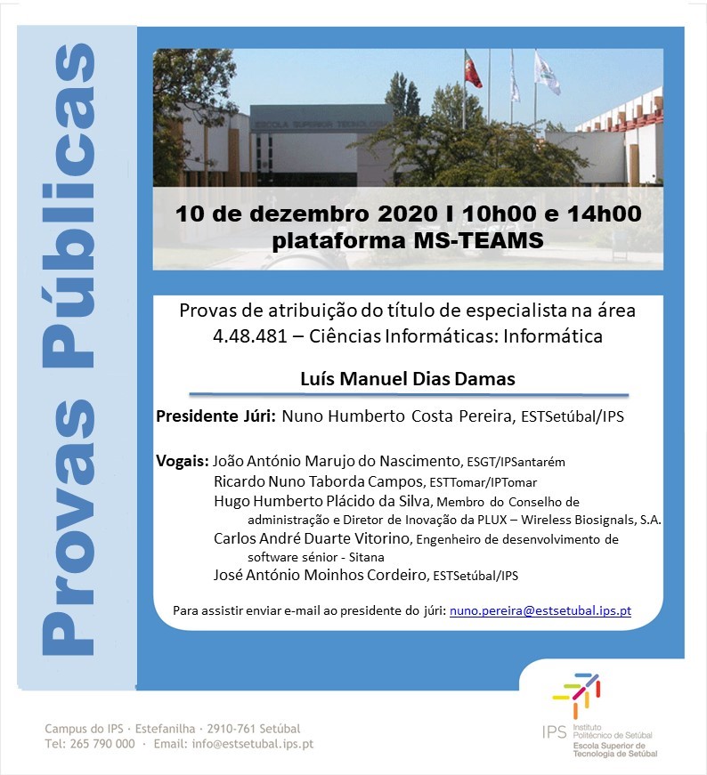 Para assistir, enviar e-mail ao Presidente do Júri: nuno.pereiranull@estsetubal.ips.pt